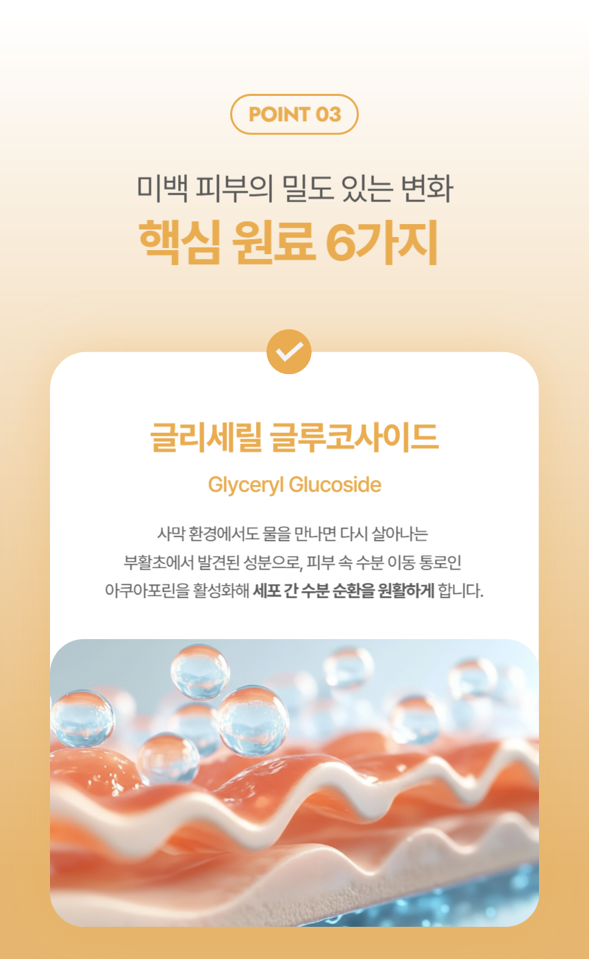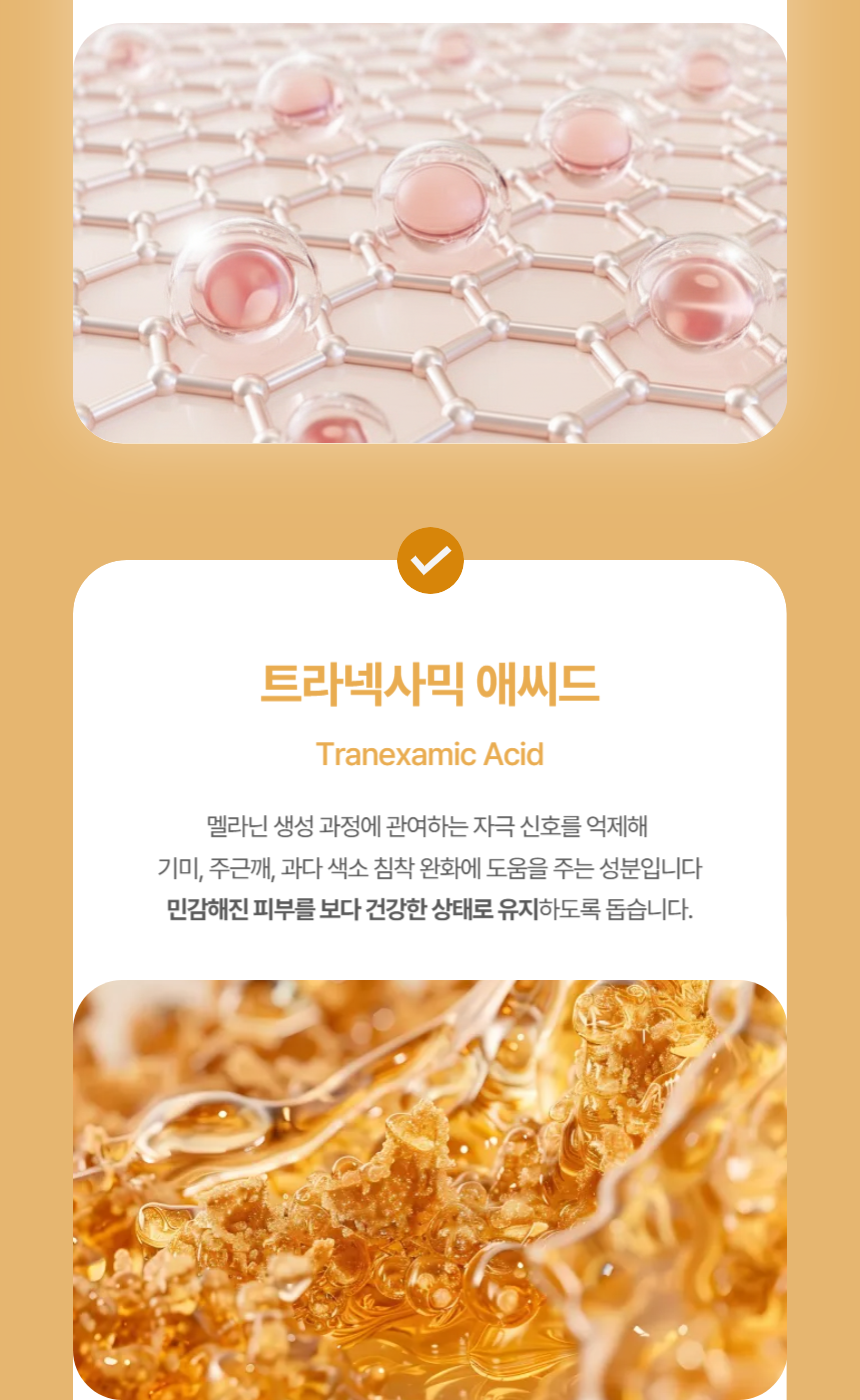 글리세올린 성분과 트라넥삼산을 함유하여 피부를 맑고 균일하게 가꾸는 데 도움을 줍니다.피부